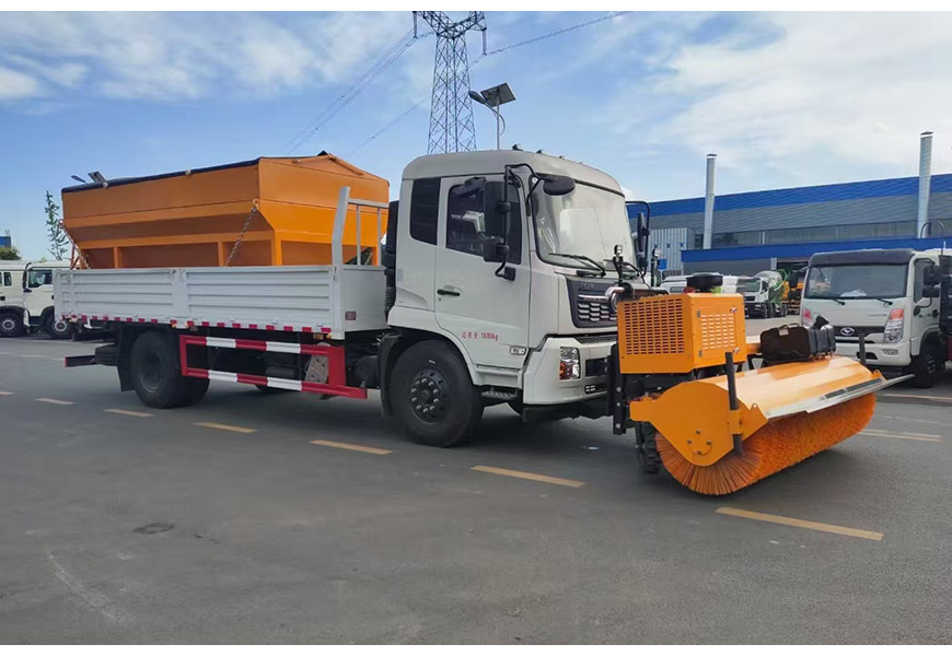 上裝配置 整體避障除雪鏟,夜間工作燈,車取力重型除雪鏟(左右雙液壓驅(qū)動(dòng))可搭配8立方或者10立方融雪撒布機(jī)(獨(dú)立柴油動(dòng)力,鏈條刮板輸送,采用V型料倉,頂部帶防雨罩,折疊式不銹鋼撒布盤)3-3.5米雪鏟、3-3.5米雪鏟及撒布機(jī)均采用集成按鍵駕駛室操作。