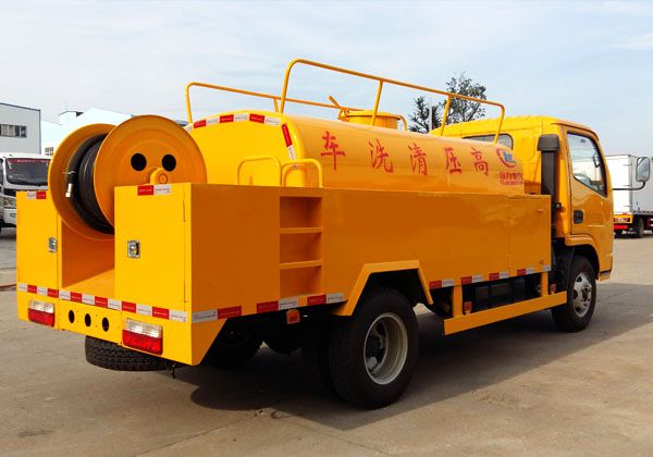 高壓清洗車也稱之為管道疏通車,通過高壓水流產(chǎn)生的強(qiáng)大壓力沖開被堵塞的管道。主要組成部分為罐體、高壓泵、液壓系統(tǒng)等。高壓清洗車主要用于清洗城市下水道、管道的沉積物、死角泥溝的疏通,也可用于清洗工業(yè)排液管道、壁面等,清洗公路、廣場地面。