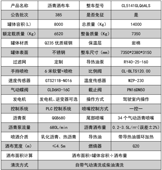 ??????湖北程力汽車:程力CL5141GLQ6ALS陜汽德龍8立方瀝青灑布車產(chǎn)品型號及參數(shù)配置,程力CL5141GLQ6ALS陜汽德龍8立方瀝青灑布車高清圖片,程力汽車系列程力CL5141GLQ6ALS陜汽德龍8立方瀝青灑布車最新報價請撥打客服熱線。車輛主要配置 產(chǎn)品商標(biāo) 程力牌 公告批次 385 產(chǎn)品名稱 瀝青灑布車 產(chǎn)品型號 CL5141GLQ6ALS 總質(zhì)量(Kg) 14000 罐體容積(m3) 7.52 額定載質(zhì)量(Kg) 6520,6455 外形尺寸(mm) 7350,7390 × 2380 × 3150 整備質(zhì)量(Kg) 73...