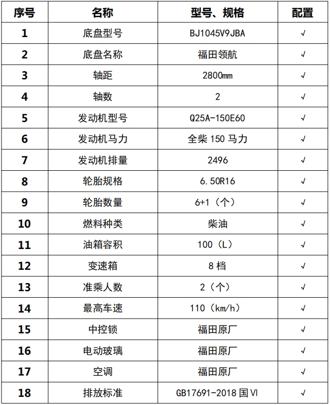 1、僅采用軸距(mm):2800;該車主要用于路面水泥凈漿灑布;主要裝置為罐體、灑布裝置; 2、側(cè)防護采用鋁合金材質(zhì),側(cè)防護與副車架螺栓連接,后防護為專用裝置代替,下邊緣離地高300mm;3、ABS系統(tǒng)控制器型號為CM4XL-4S/4M,ABS系統(tǒng)控制器生產(chǎn)企業(yè)為廣州瑞立科密汽車電子股份有限公司。后部照明燈僅在駐車狀態(tài)下使用,起夜間照明作用,行駛過程中不可點亮.選裝前圍風(fēng)格,選裝鋁合金輪轂。