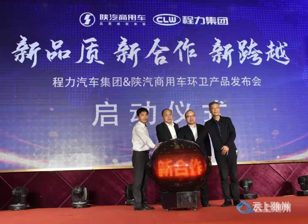 程力汽車集團(tuán)黨委副書(shū)記、集團(tuán)公司常務(wù)副總經(jīng)經(jīng)理、程力(湖北)底盤供銷公司董事長(zhǎng)程國(guó)強(qiáng),陜汽商用車銷售公司副總經(jīng)理魏宇龍,程力集團(tuán)副總經(jīng)理、底盤供銷公司總經(jīng)理劉峰,陜汽商用車銷售公司專用車部部長(zhǎng)穆瑋周共同啟動(dòng)水晶球,宣布程力集團(tuán)陜汽商用車環(huán)衛(wèi)系列產(chǎn)品正式發(fā)布。