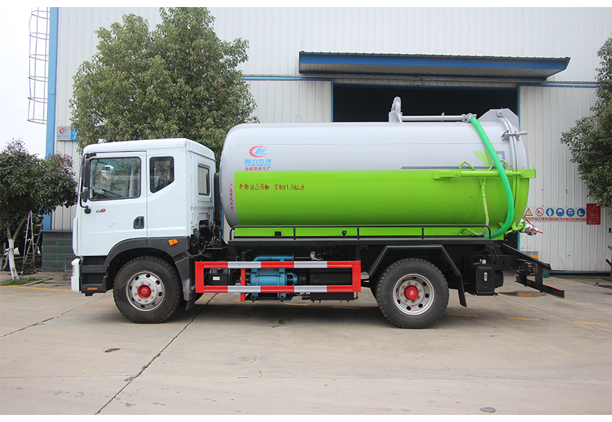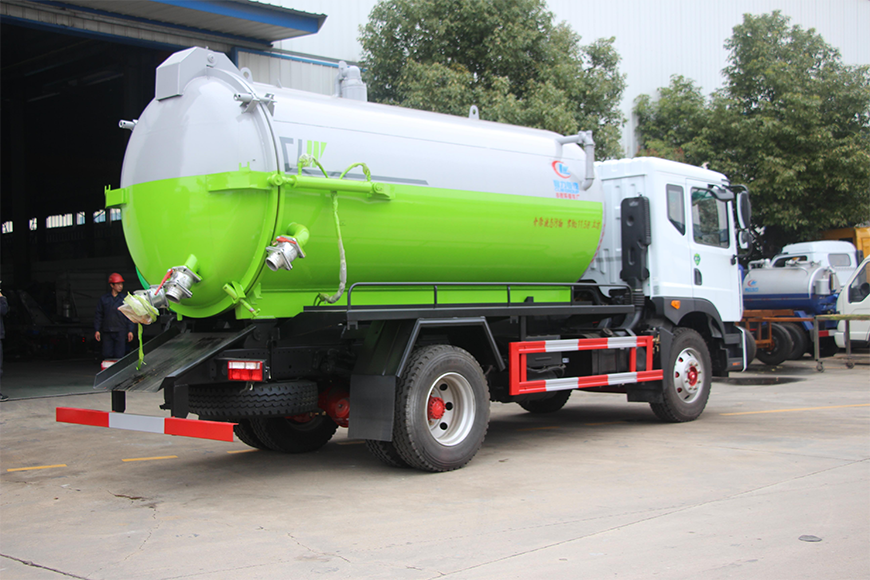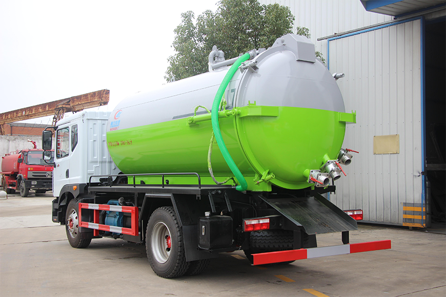上裝配置 污罐:Q235武鋼6MM厚碳鋼板,標(biāo)配采用億豐SK-12水循環(huán)泵。防溢閥,視糞管,配一根8米吸污管,罐體封頭一次壓鑄成型、罐體帶舉升,后蓋為液壓開啟。罐內(nèi)污物可通過后蓋直接傾倒,具有真空度高、噸位大、效率高、用途更廣泛的特點(diǎn)。