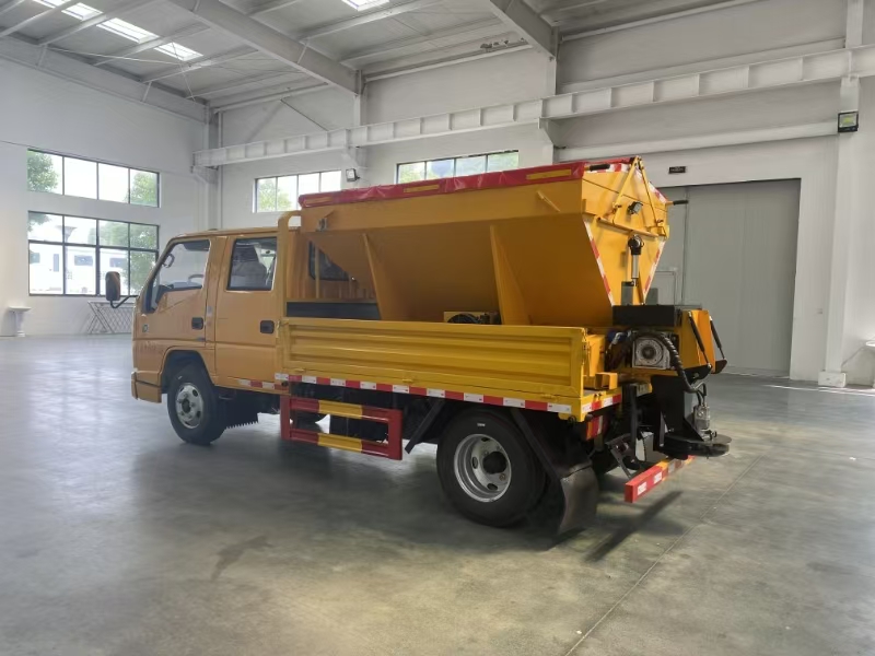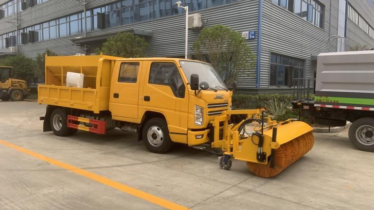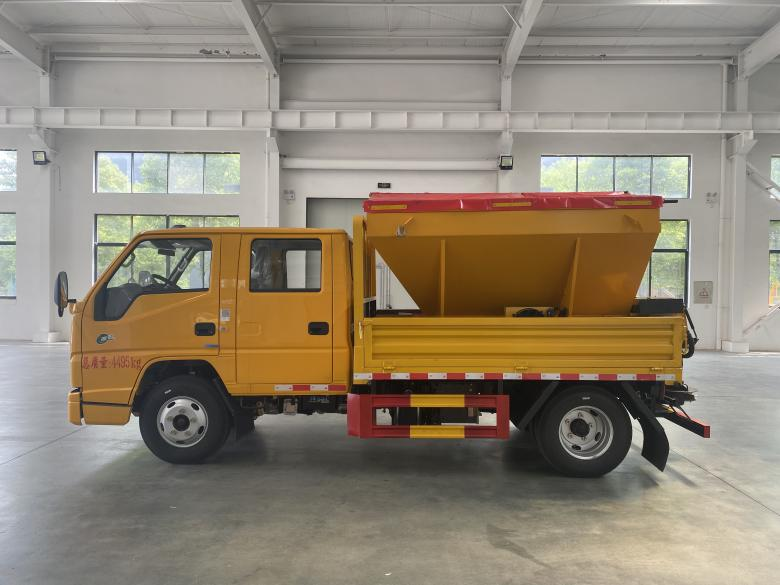 上裝配置 箱體尺寸2600*2060*400mm,箱體內(nèi)裝 3立方融雪撒布機,撒布機采用 V 型料倉,結(jié)構(gòu)簡單可靠,使融雪劑自動落料,出料完全,無殘留。駕駛室可加裝2米除雪鏟或者2米除雪滾。